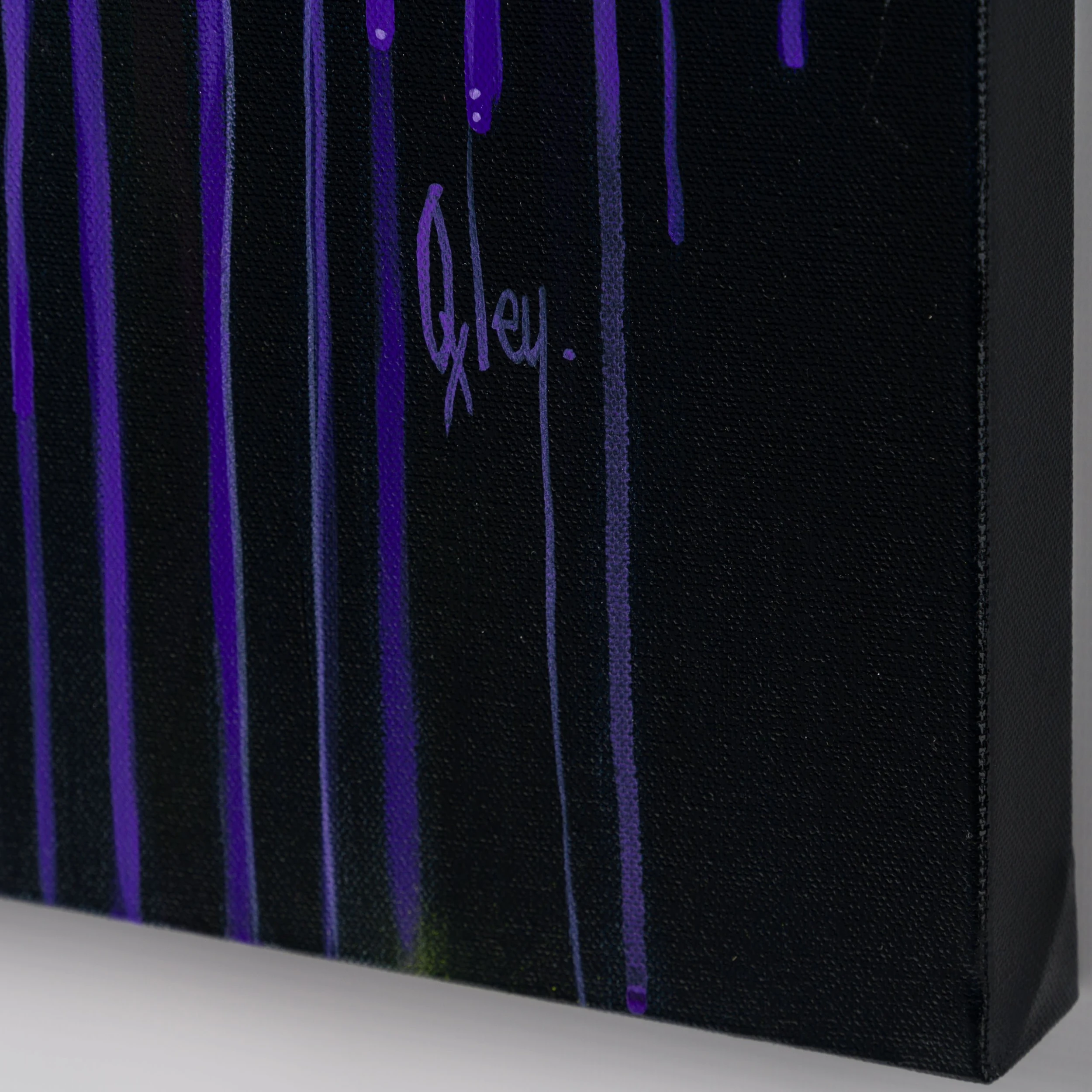 Many of Oxley’s pieces skilfully blend elements of surrealism and expressionism, infusing each piece with energy and emotion. His expressive brushwork is energetic and fluid, giving his paintings a sense of movement and spontaneity as his captivating portraits feature wild animals created through intense patterns and psychedelic colour. This loose style adds to the emotional impact of his artwork, giving life and movement to the wolf, while contrasting with the fixed stare of the eyes.