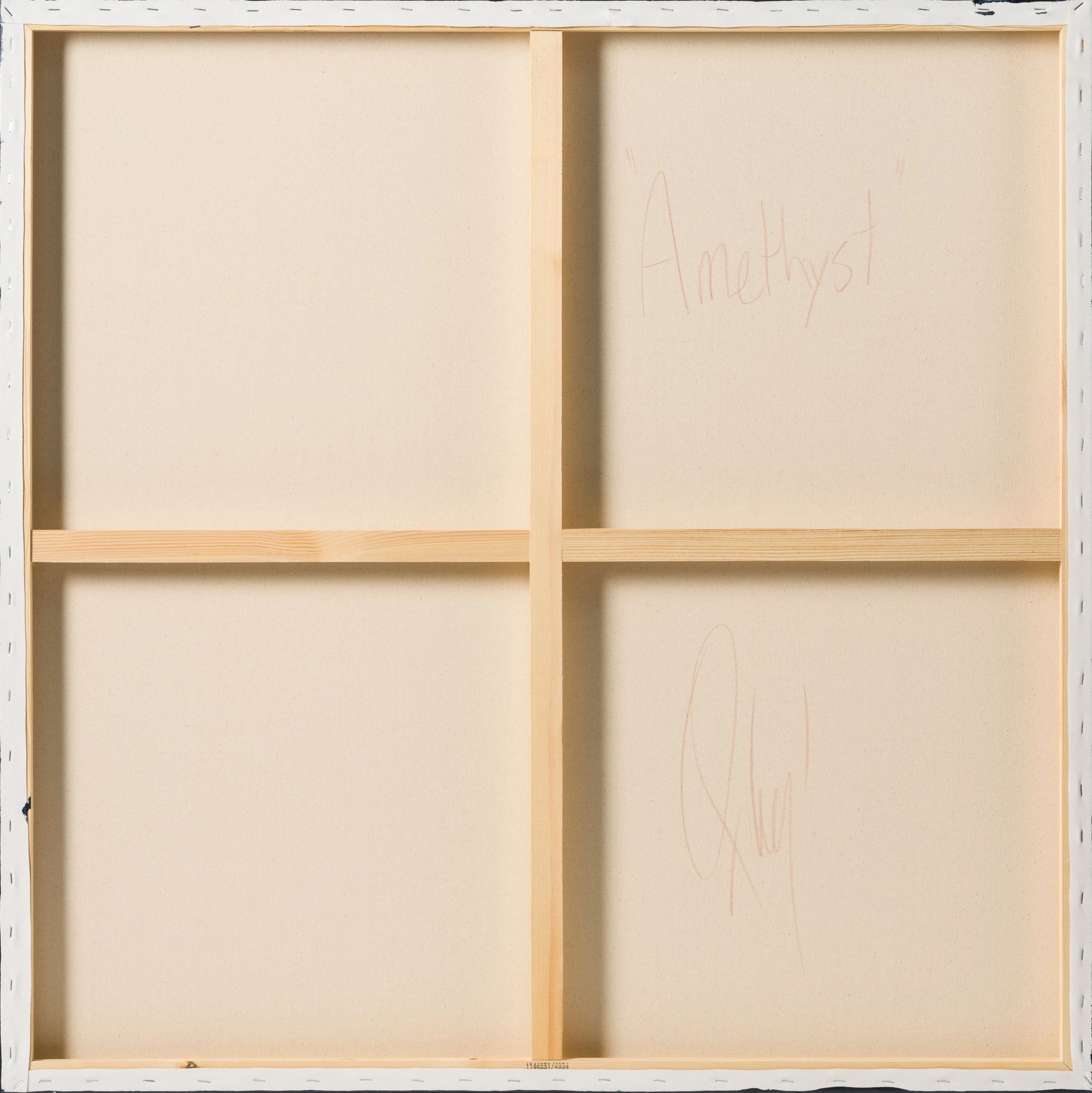 The traditional colours of a wolf are overthrown by exciting shades of purple, transforming the animal into an “ethereal, astral” being through his kaleidoscopic use of colour and form. The strong shades of purple contrast beautifully with the green highlighted by the black background.