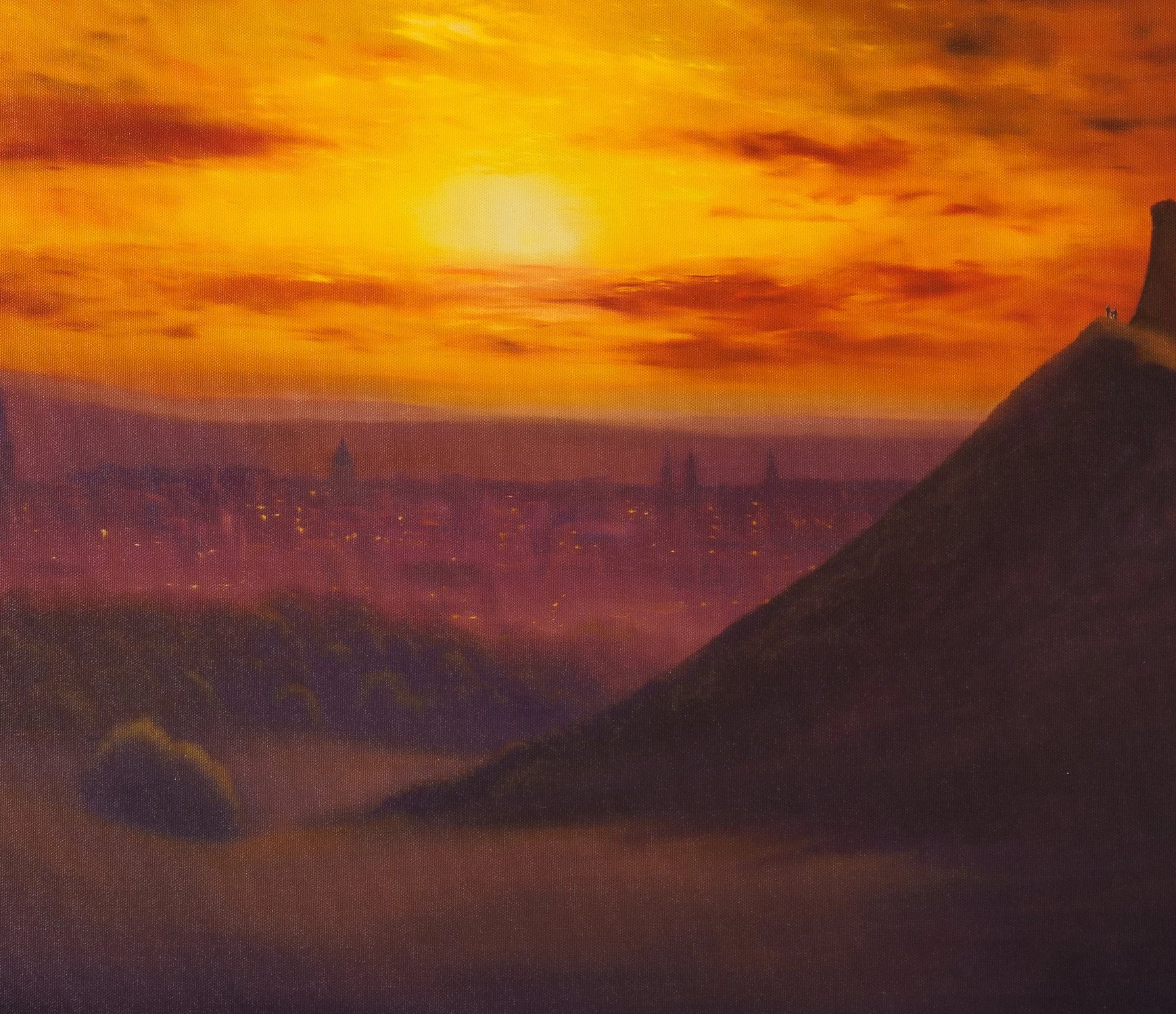 An exciting departure for the artist, this moody yet warming limited edition artwork by Lawrence Coulson captures the iconic view of Edinburgh from the peak of Arthur’s Seat. The ancient volcano has been captured by artists for centuries but Lawrence has transformed the view with his romantic style that sets the sky alight with fiery colours and clouds.