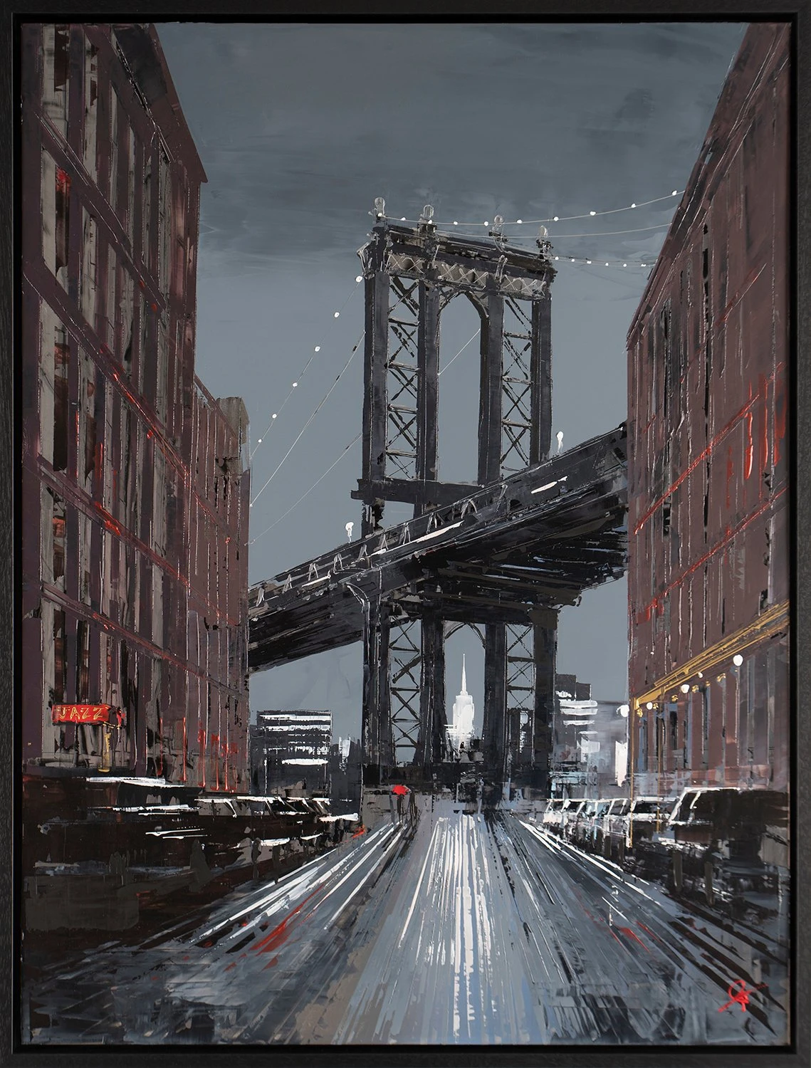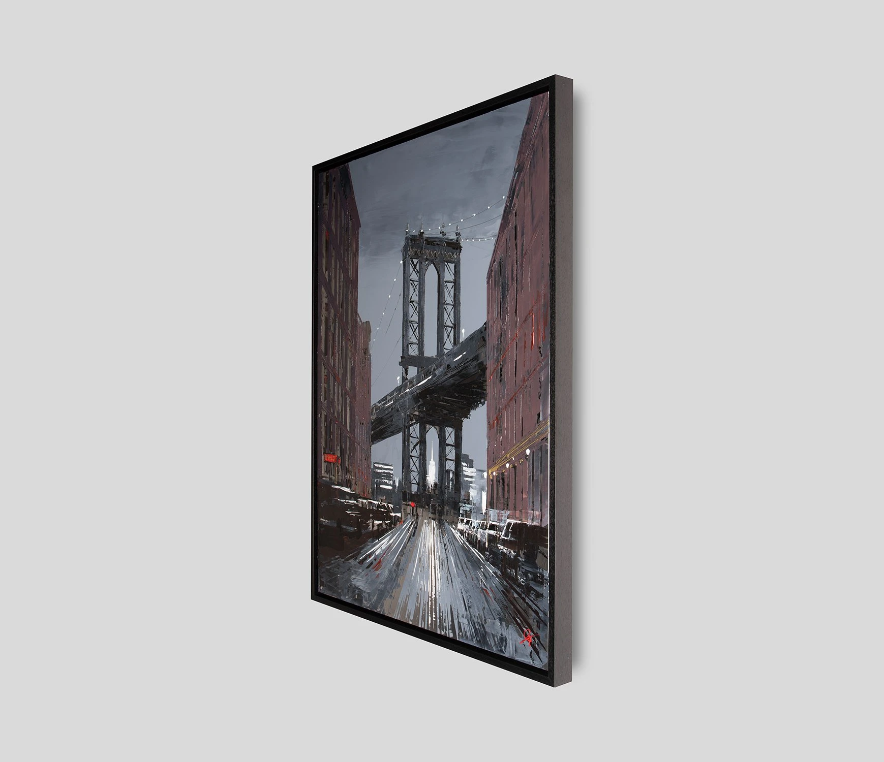 On creating his metallic cityscapes, Paul wrote: “The reason that I paint onto metal is that it creates another dimension. If I’m painting a cityscape scene and there’s lots of buildings, I use the metal to create another dimension in the windows, doorways and reflections. It just adds another interesting feature and mood to a painting”.