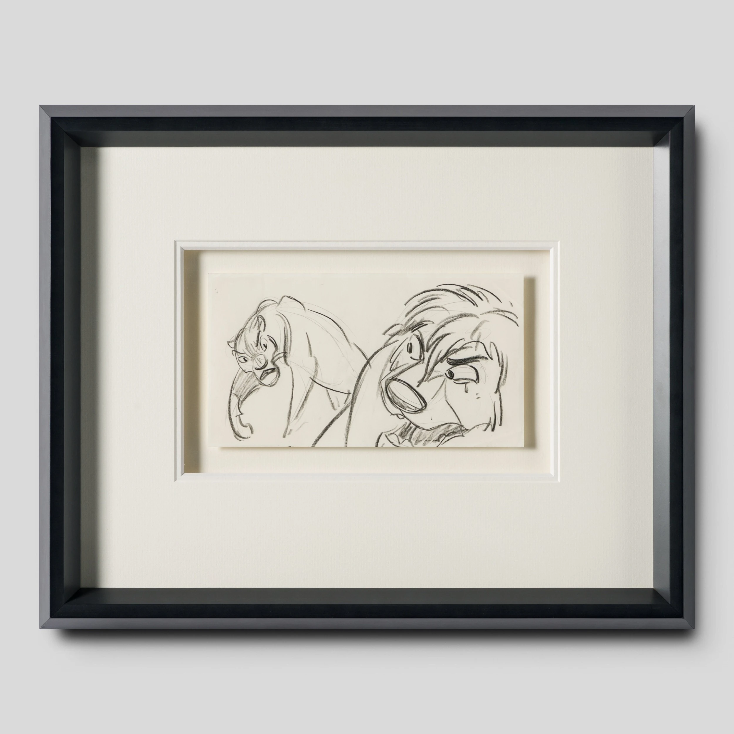 Displayed on its original, beautifully aged paper, this original storyboard drawing showcases the artistic nature of the early animations and their warmly expressive forms. Now mounted and framed, this piece is the perfect way to add a sophisticated and muted touch of Disney magic to your home. Match with another drawing from our to create a perfect pair.