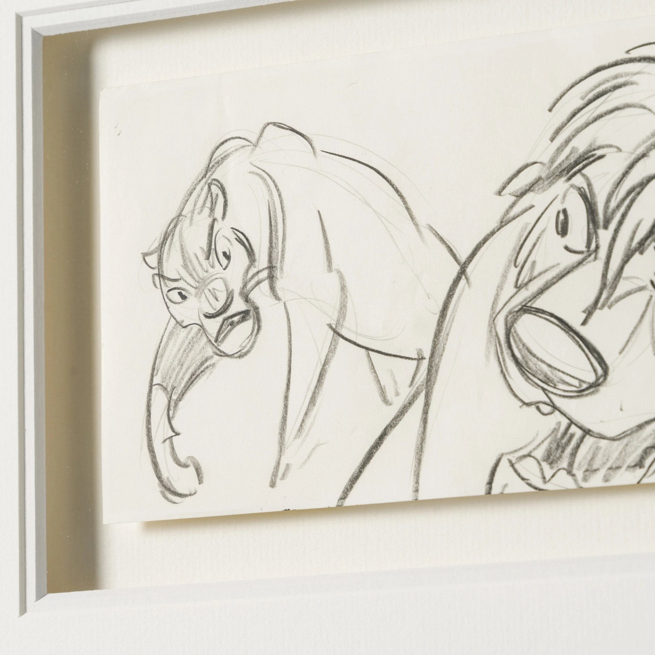 With an award-winning soundtrack featuring numbers by Elton John and Hans Zimmer, and a cast with such voice actors as James Earl Jones, Whoopi Goldberg and Rowan Atkinson, it is unsurprising that Walt Disney’s 1994 animated film ‘The Lion King’ continues to be a global favourite. It won two Academy Awards, a Golden Globe, had two sequels and one prequel, spawned a global touring Broadway production and, most recently, a photo-realistic adaptation in 2019 featuring the voices of Beyoncé and Donald Glover. The original film from 1994 is still the high-grossing traditionally animated film of all time and this drawing is taken from an original storyboard created and used by the animators during the film’s early production.