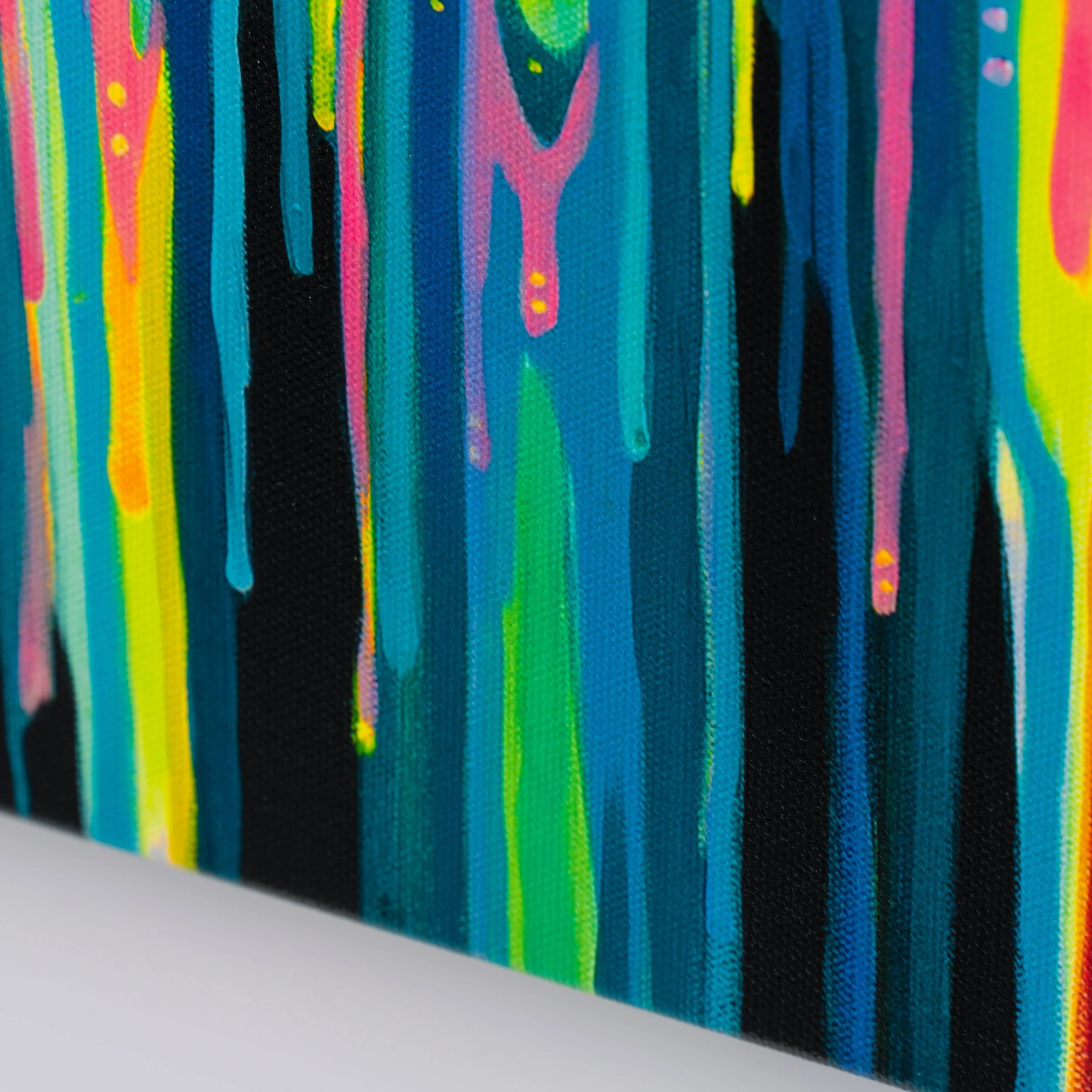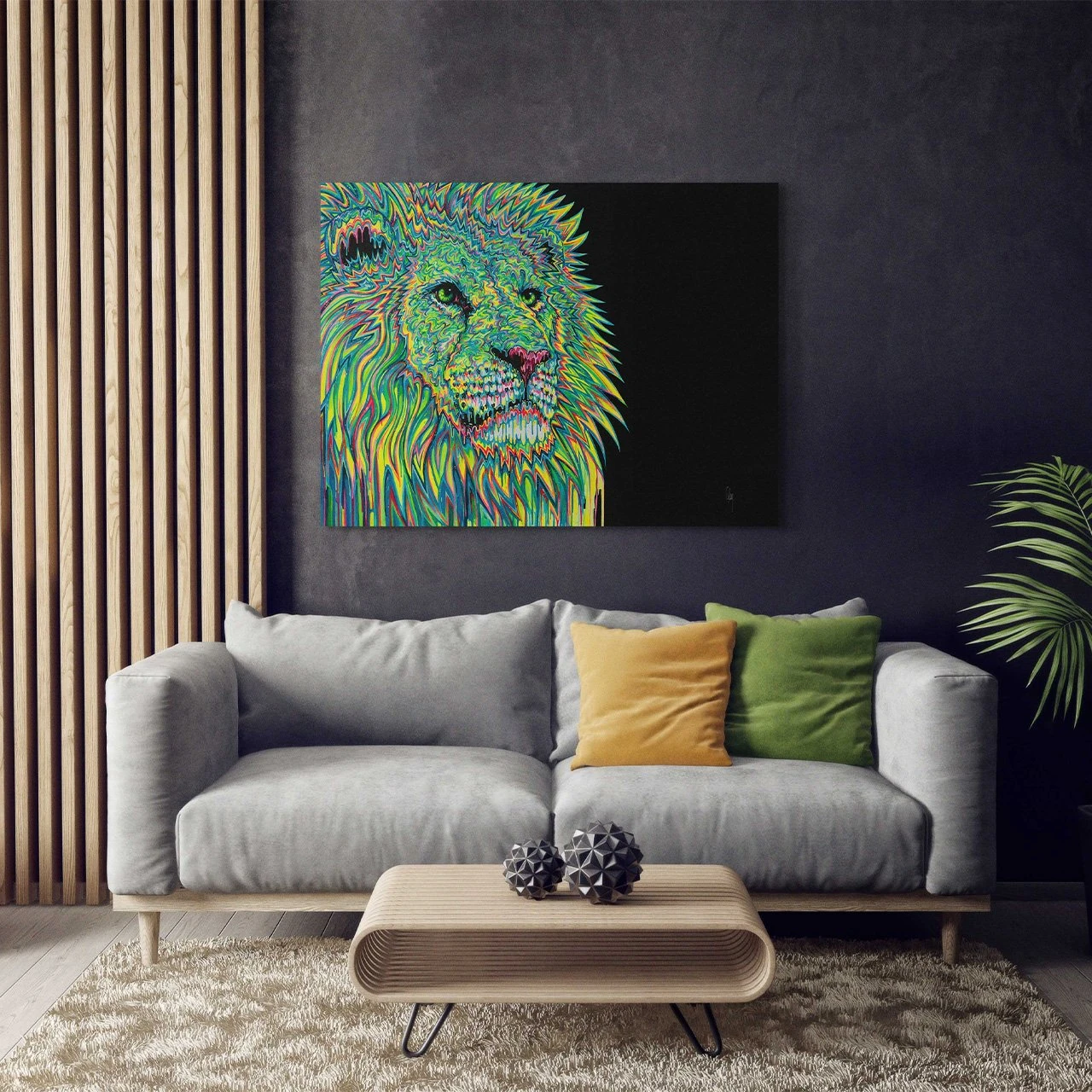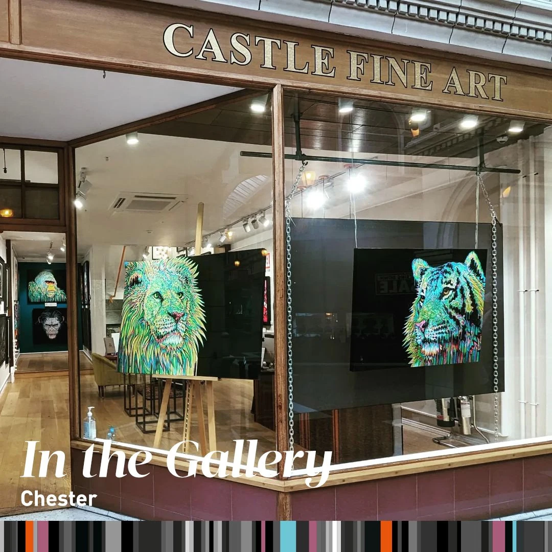 Vibrant colours appear to explode out and drip down the canvases of these powerful limited edition artworks by Robert Oxley. The traditional colours of the animals are overthrown by exciting shades of green, pink, yellow- to name a few- that breathe life into the dark black backgrounds and create majestic and powerful portraits of nature.