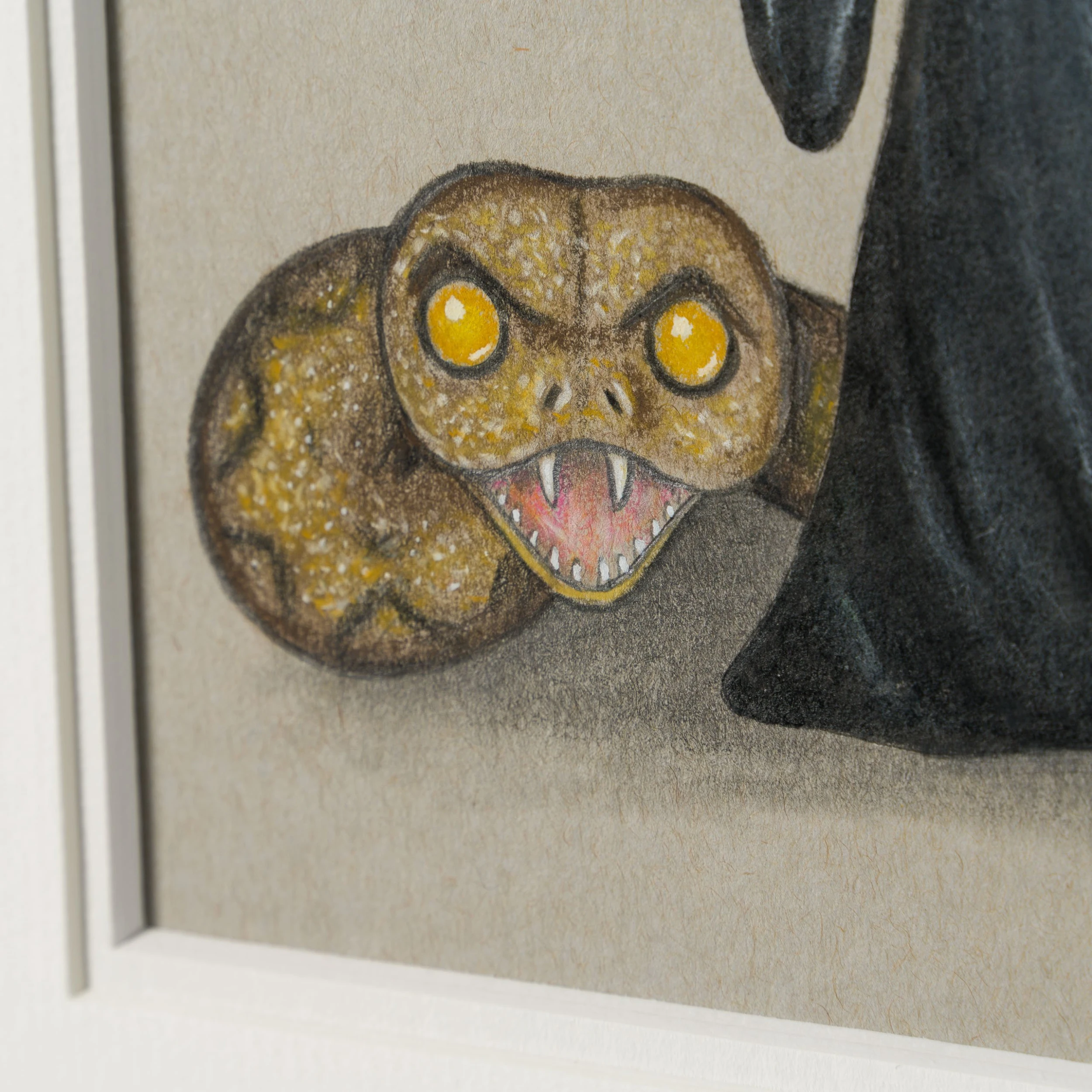 In this signed original drawing by , we see one of the world’s most iconic and notorious characters rendered in an extra-ordinarily magical way. In his signature style with ripped paper backgrounds and still life toys, Humphries created another universe that appeals to our inner child and magically captures the imagination and nostalgia of childhood, bringing these feelings to life on canvas. The artist told us he wanted the collection to represent the main character’s journey from his early day at the school to his final battle with the main villain. This piece is very reminiscent of re-enacting and bringing your toys to life, setting up your main characters, and imagining yourself as one on a quest or adventure with your best friends.